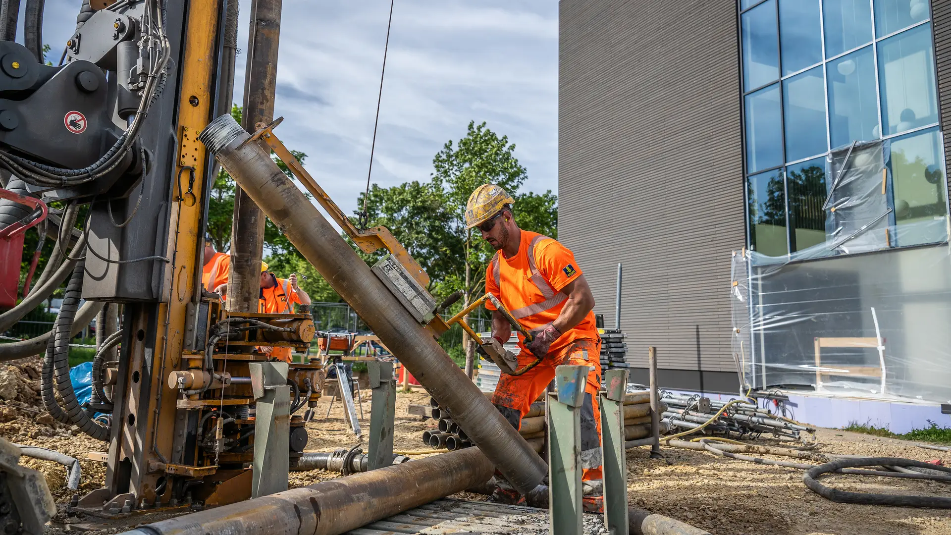 Regensburg, Germany – The first rays of sunshine cast their warm light on the huge glass buildings of Regensburg University. Students flock to the site. Some are in a hurry, some walk more leisurely. And right in the middle of the action for nine months: the team from BAUER Resources GmbH, which built a geothermal probe system on the campus on behalf of CMS Container Modul Systeme GmbH for the modular building planned by meuer - planen beraten Architekten GmbH – from A to Z and despite the limited space.
